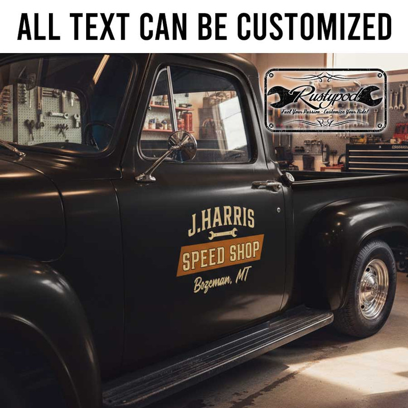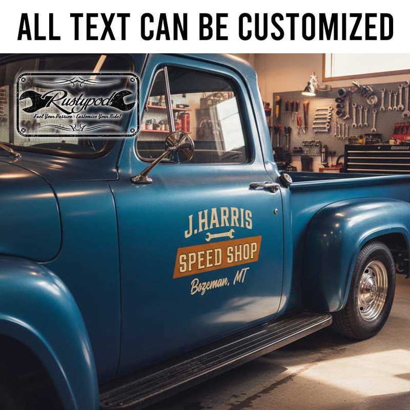 personalized speed shop sign decal hot rod decal rat rod door sign decal kustom kulture sticker 13932