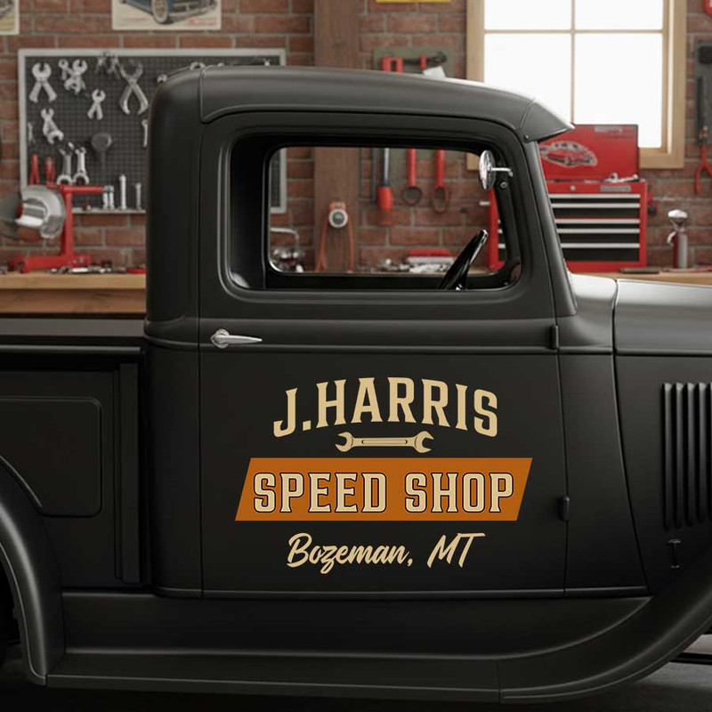personalized speed shop sign decal hot rod decal rat rod door sign decal kustom kulture sticker utilizes advanced UV printing technology on high-quality vinyl panels, ensuring vivid colors and outstanding durability. The decal boasts excellent resistance to environmental impacts such as sunlight, rain, and scratches, and is completely safe for all vehicle surfaces. Application is quick and hassle-free, making it perfect for both personal and business use. We offer customization according to your unique requirements and provide a contour cut option to remove excess material, creating a painted-on appearance for your sticker. Our products are ideal for cars, motorbikes, glass doors, and more, perfectly suited for showcasing personality or advertising your brand.