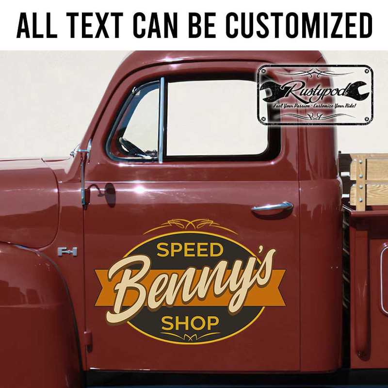 personalized speed shop sign hot rod door art shop truck lettering kustom kulture sticker 13665
