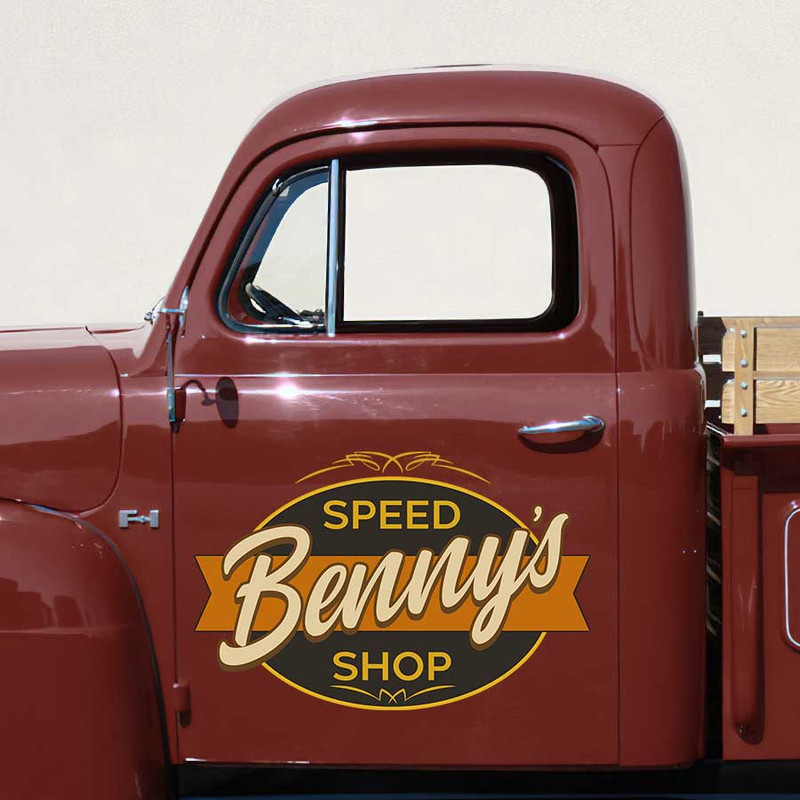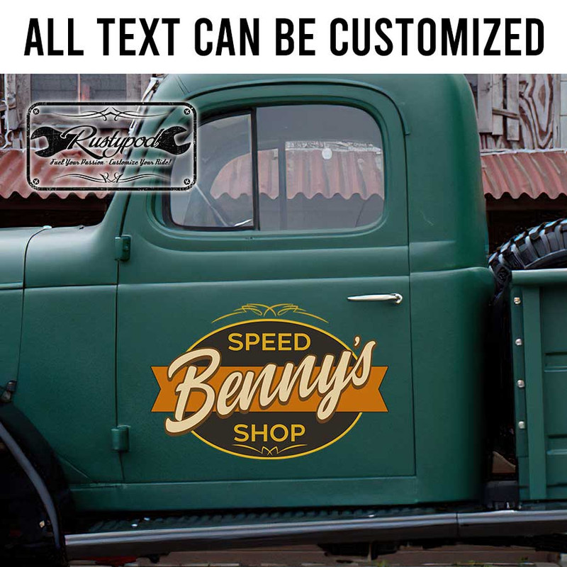 personalized speed shop sign hot rod door art shop truck lettering kustom kulture sticker uses advanced UV printing technology on premium vinyl panels for vibrant, crisp details and a finish that stands out.
