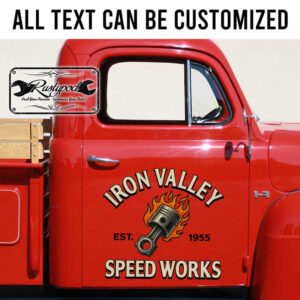 personalized speed work lettering decal piston logo decal kustom kulture sign writing sticker utilizes advanced UV printing technology on high-quality vinyl panels, ensuring vibrant colors and exceptional durability. Our decals offer outstanding resistance to environmental impacts, maintaining their appearance even in harsh conditions. They are designed to be safe for all vehicle surfaces and incredibly easy to apply. You can fully customize your design according to your preferences. We offer a special contour cut option that eliminates excess decal, creating a seamless, painted-on look.