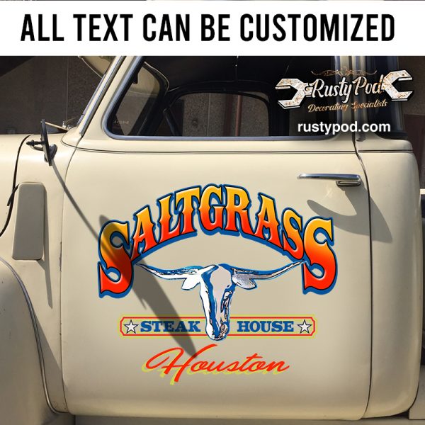 Personalized steak house long horn skull sticker 10999