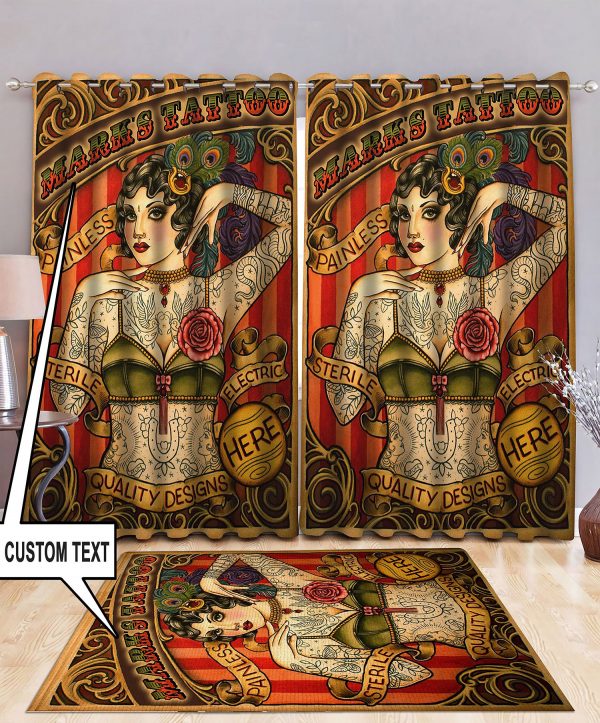 Show everyone your creativity, the Tattoo Rug is the perfect way to show it off! This personalized tattoo living room set rug and curtain is made from 100% polyester and is washable for easy care. It is also stain and fade-resistant. The tattoo rug is the perfect addition to any room!