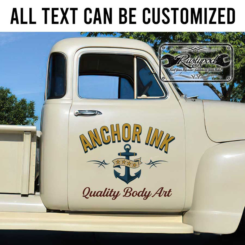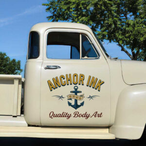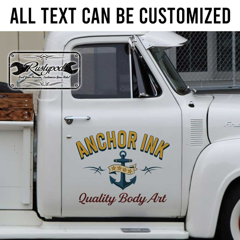 personalized tattoo shop letering archor logo sticker uses advanced UV printing technology on vinyl panels, ensuring high durability and excellent resistance to environmental impacts. It is completely safe for vehicle surfaces and offers easy application.