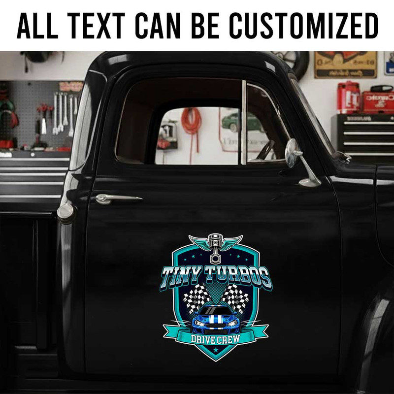 Personalized Tiny Turbos Drive Crew Truck Door Decal for Racing Clubs and Car Enthusiasts sticker 14230
