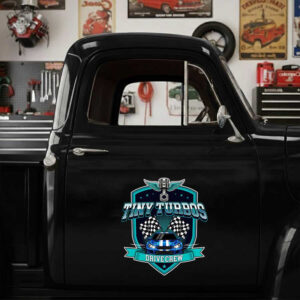 Personalized Tiny Turbos Drive Crew Truck Door Decal for Racing Clubs and Car Enthusiasts sticker 14230 is perfectly tailored for you if you love all things racing sticker. Built using industry-leading materials, our decal guarantees rigorous durability to last you for years. Feel confident in its lasting power, as it is fully fortified against water splashes, direct sunlight exposure, and harsh environmental wear.