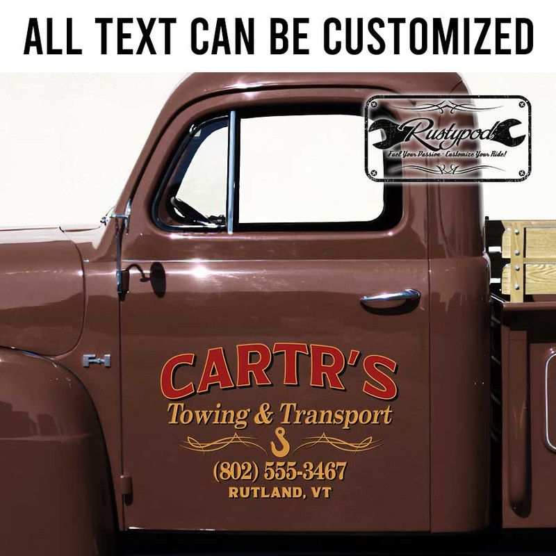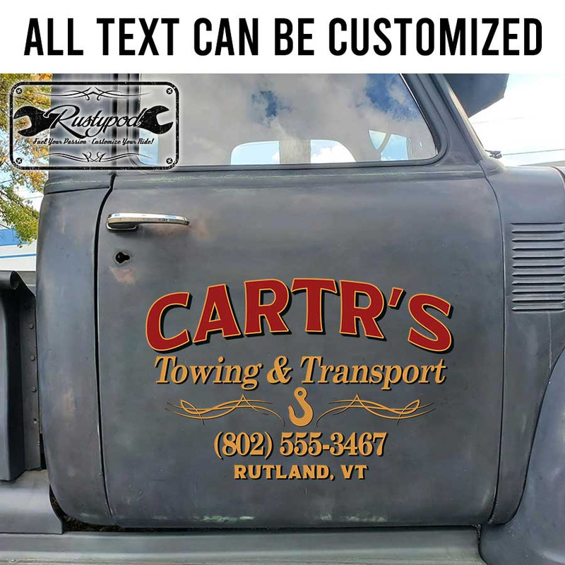personalized towing and transport company sign pinstriping lettering truck graphics sticker 13698