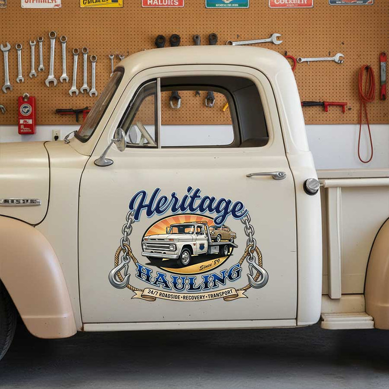 personalized towing truck company lettering decal hauling company sign decal car lettering decal hook logo sticker uses UV printing technology on durable vinyl panels, offering strong resistance to environmental impacts and ensuring safety for vehicle surfaces.