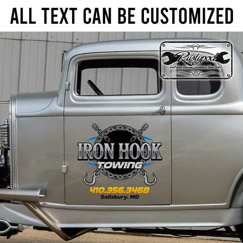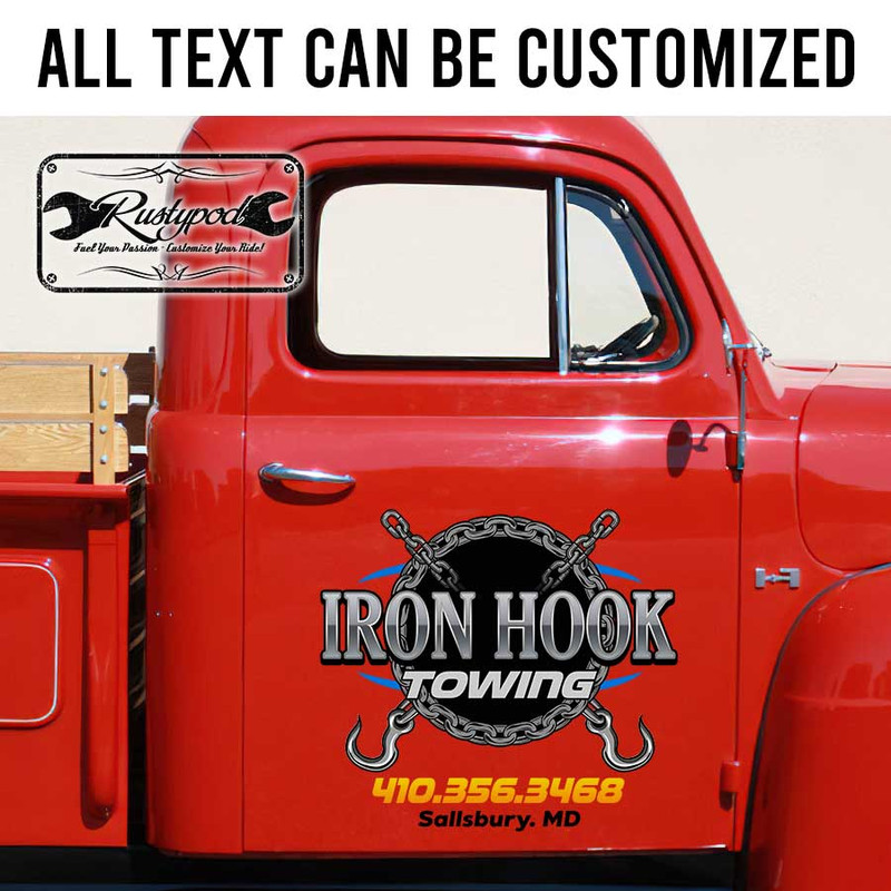 personalized towing truck lettering decal recovery truck lettering hook and chain lettering sticker 13745