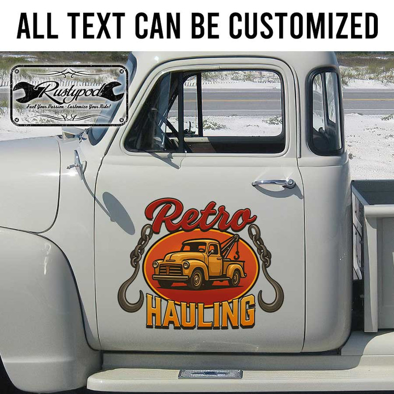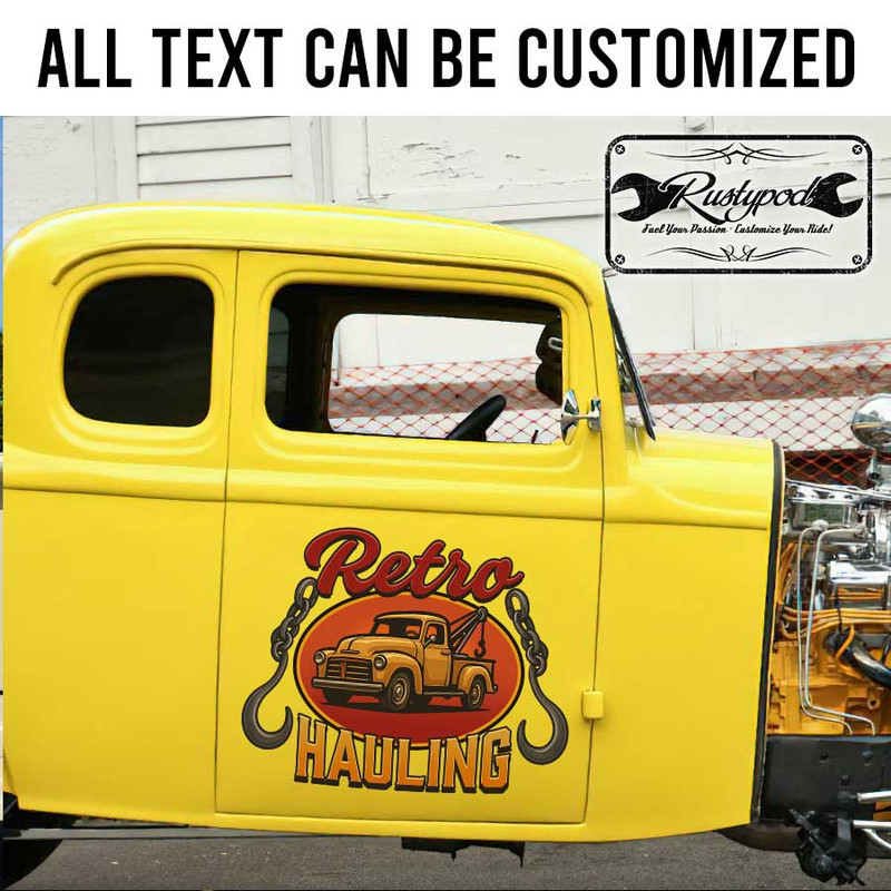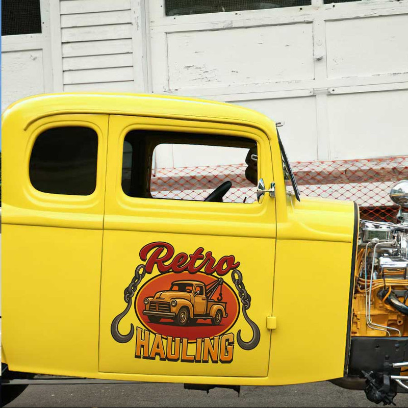 personalized towing truck lettering retro hauling shop truck door art sticker uses advanced UV printing technology on durable vinyl panels. This ensures exceptional durability and resistance to environmental impacts while remaining safe for vehicle surfaces.