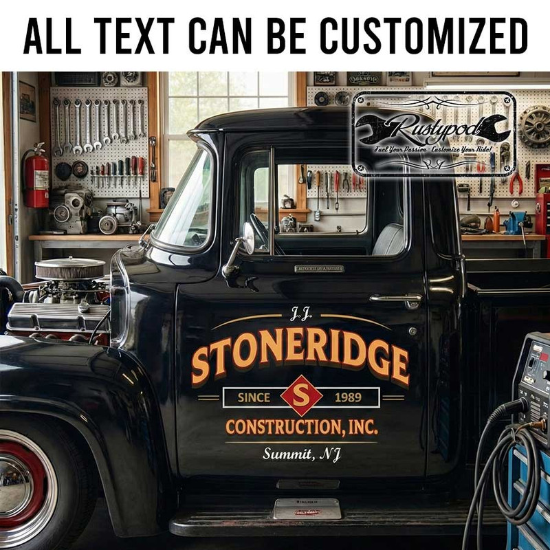 personalized truck graphics decal construction company sign decal truck lettering sticker 13954