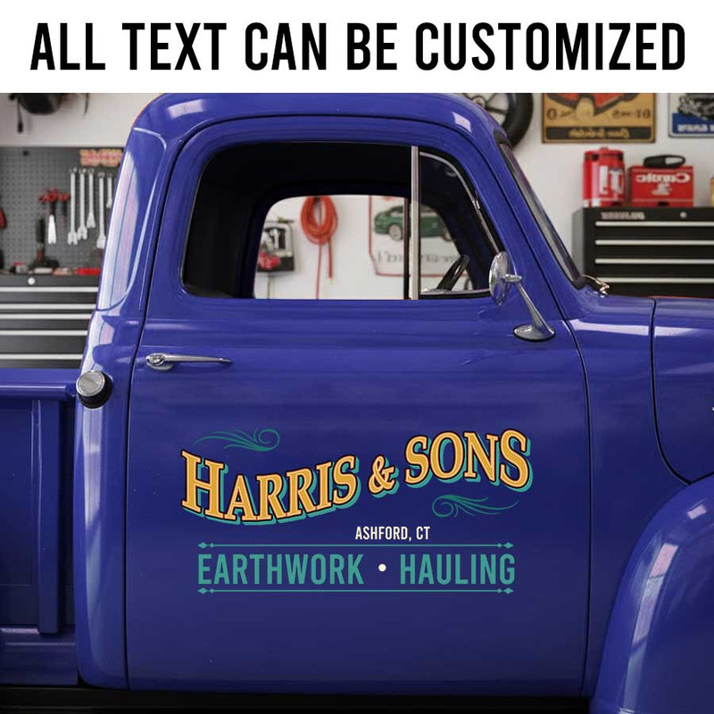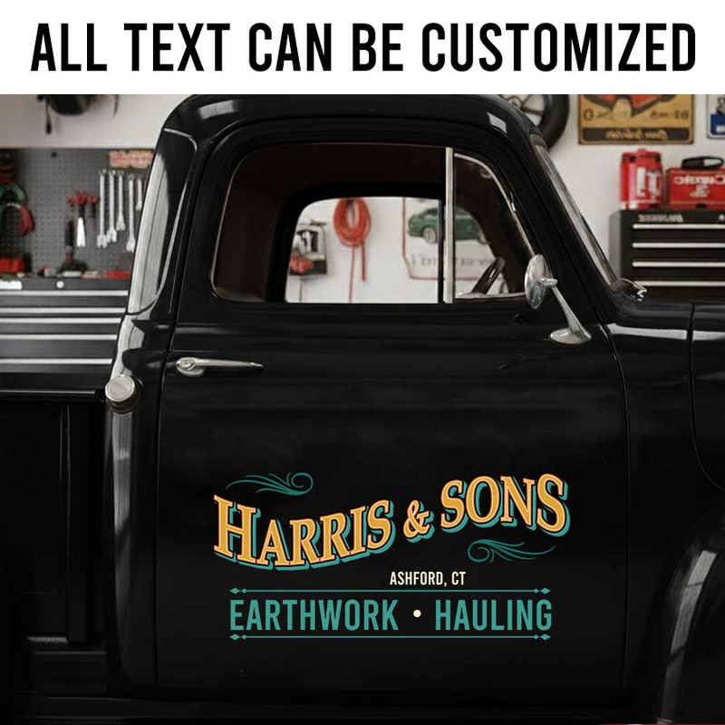 personalized truck graphics decal pinstriping art decal vehicle lettering decal door sign sticker is crafted using advanced UV printing technology on durable vinyl panels.