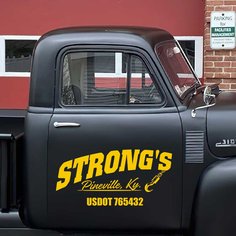 personalized truck graphics decal towing company sign decal vehicle lettering recovery garage sign sticker utilizes advanced UV printing technology on high-quality vinyl panels, ensuring vibrant colors and exceptional durability. Our decals offer outstanding resistance to environmental impacts, maintaining their appearance even in harsh conditions. They are designed to be safe for all vehicle surfaces and incredibly easy to apply. You can fully customize your design according to your preferences. We offer a special contour cut option that eliminates excess decal, creating a seamless, painted-on look.