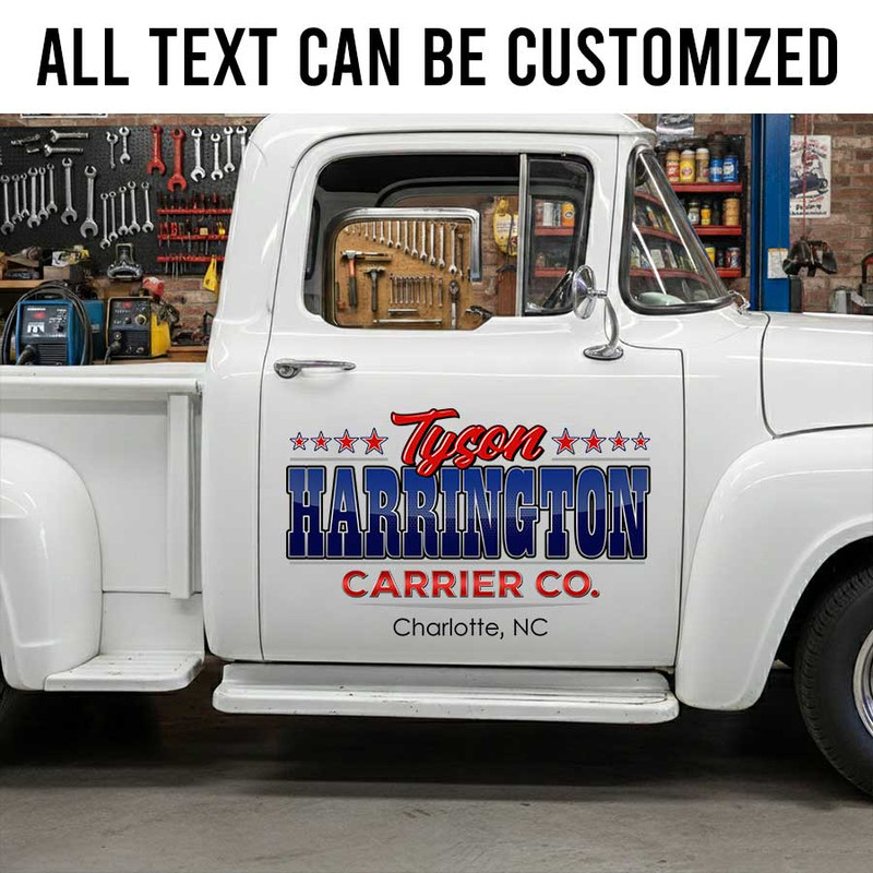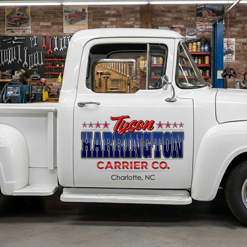 personalized truck graphics lettering decal vehicle lettering decal company door sign decal sticker is a premium decal made with UV printing technology on high-quality vinyl panels. It?s built for high durability, resists scratches and fading, and stands up well against sunlight, rain, and other environmental impacts. The adhesive is designed to be safe for vehicle surfaces and makes application quick and easy on cars, motorbikes, glass doors, and more?great for expressing personality or advertising brands.
