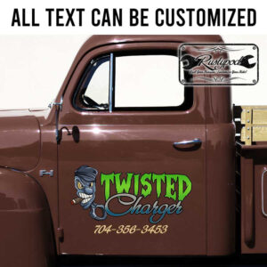 personalized twisted charger lettering piston logo lettering decal muscle car lettering decal hot rod sticker uses advanced UV printing technology on premium vinyl panels, ensuring outstanding image sharpness and color vibrancy.