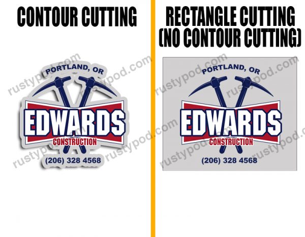 - Contour Cutting/Trim means that the decals are printed with an outline hugging the design. Meanwhile, with no contour cut, the outline will be a rectangle instead.