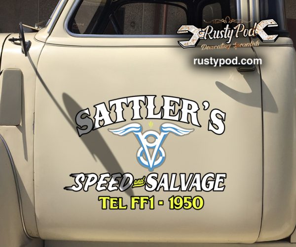 At Rustypod, we have a talented design team ready to help you bring your ideas to life. So why wait? Order your personalized V8 Speed and Salvage sticker 10935 today and add some personality to your ride. And don’t forget to check out our other car lettering-style products as well!