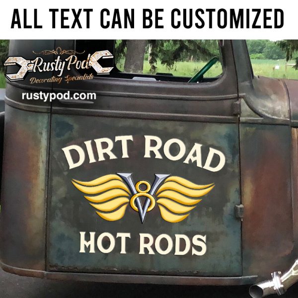 Be the first to review “personalized v8 wing hot rod lettering vinyl sticker 10408”