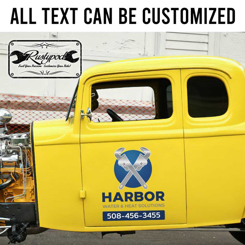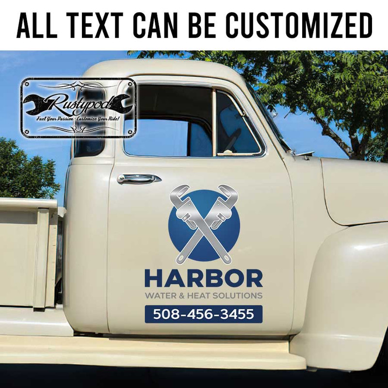 personalized water and heat solution company car lettering decal vehicle lettering plumbing lettering sticker uses advanced UV printing technology on premium vinyl panels for vibrant, crisp details and a finish that stands out.