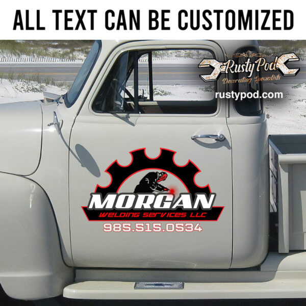 personalized welding service company gear head lettering sticker uses UV printing technology on vinyl panels, ensuring high durability and resistance to environmental impacts. It is safe for vehicle surfaces and easy to apply. The design of personalized welding service company gear head lettering sticker can be customized according to customer requirements, making it suitable for cars, motorbikes, glass doors, and more. personalized welding service company gear head lettering sticker is perfect for expressing personality and advertising brands. With personalized welding service company gear head lettering sticker, you get both functionality and style. Explore our wide range of designs related to welding sticker. Customers might also like them.