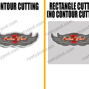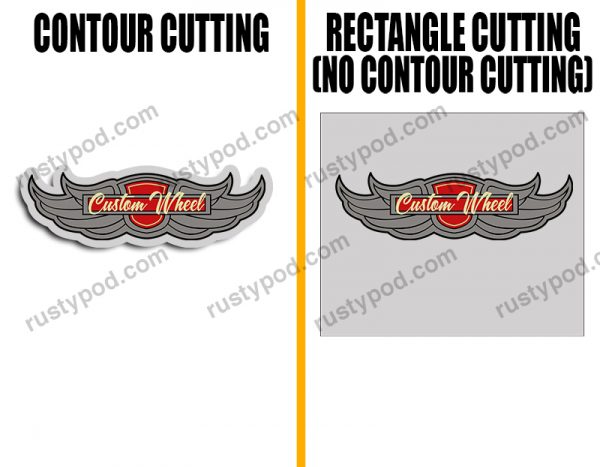- Contour Cutting/Trim means that the decals are printed with an outline hugging the design. Meanwhile, with no contour cut, the outline will be a rectangle instead.