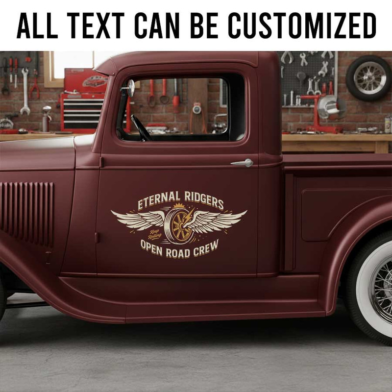 personalized wing wheel motorcycle lettering decal motor rider lettering kustom kulture sticker uses advanced UV printing technology on durable vinyl panels.