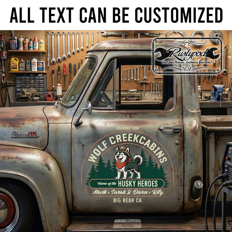 personalized wolf logo lettering decal shop truck door art husky logo sticker utilizes advanced UV printing technology on high-quality vinyl panels, ensuring vivid colors and outstanding durability. The decal boasts excellent resistance to environmental impacts such as sunlight, rain, and scratches, and is completely safe for all vehicle surfaces. Application is quick and hassle-free, making it perfect for both personal and business use. We offer customization according to your unique requirements and provide a contour cut option to remove excess material, creating a painted-on appearance for your sticker. Our products are ideal for cars, motorbikes, glass doors, and more, perfectly suited for showcasing personality or advertising your brand.