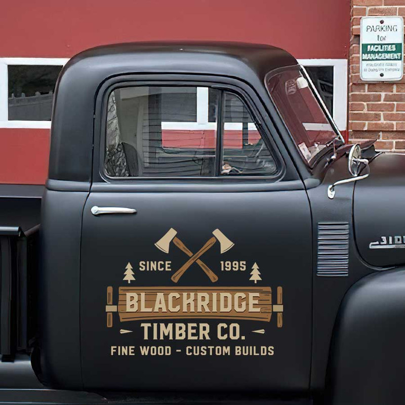 personalized wood working lettering timber company door sign axes lettering sticker uses advanced UV printing technology on durable vinyl panels. This ensures high durability and strong resistance to environmental impacts.