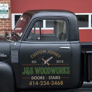 personalized woodworking company sign joinery vehicle lettering vehicle graphics sticker uses advanced UV printing technology on vinyl panels, ensuring high durability and excellent resistance to environmental impacts. It is completely safe for vehicle surfaces and offers easy application.