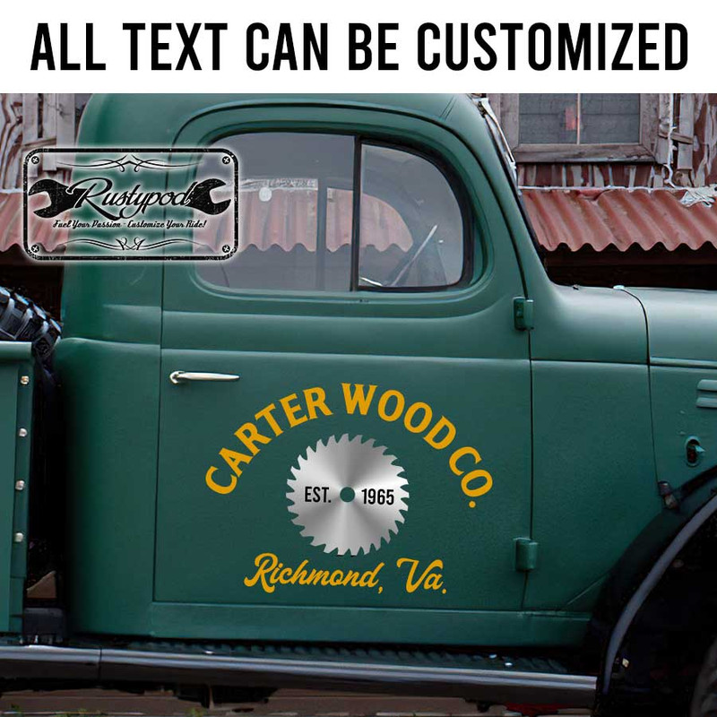 personalized woodworking lettering decal carpenter sign decal saw logo sticker 13765