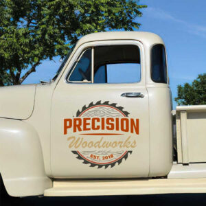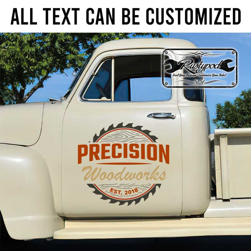 personalized woodworks lettering lumber company sign saw logo sticker uses advanced UV printing technology on vinyl panels, ensuring high durability and resistance to environmental impacts. The decal is safe for vehicle surfaces and is easy to apply. Custom designs are available based on customer requirements.
