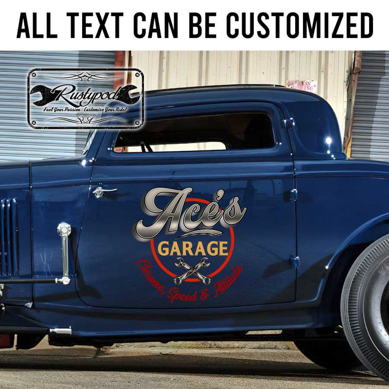 personalized wrench garage lettering decal car lettering sticker hot rod sticker kustom kulture sticker utilizes advanced UV printing technology on premium vinyl panels, ensuring outstanding durability and vibrant colors. These decals are designed to resist harsh environmental impacts, making them a safe choice for any vehicle surface. Application is quick and easy, and the material ensures no damage or residue is left behind. Each design can be customized to suit your unique requirements, with contour cut options that trim excess decal for a painted-on look. Perfect for cars, motorbikes, glass doors, and more, these decals let you express your personality or advertise your brand with style.