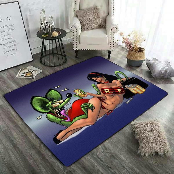 This Rat fink hot rod rug is an indispensable addition to any interior decor vocabulary. It covers the ugly floors and makes your home a little more cozy and snug. The rug is thoughtfully designed with vivid artwork and stunning colors from designers at Rustypod.