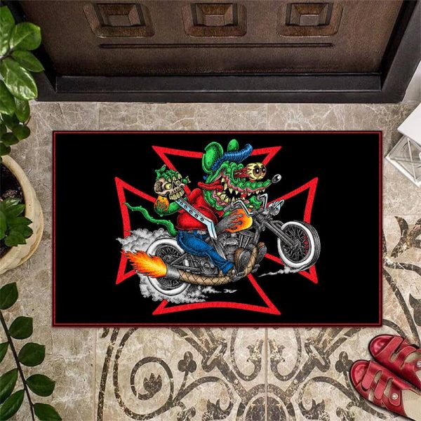 Rat fink motocycle door mat is one of the easiest ways to personalize your home decor. You can mix and match sizes to create your own family’s room or give it as a gift to be enjoyed for years to come. This Rug is a beautiful way to showcase your unique personality. Moreover, it is one of the easiest ways to personalize your house with our custom area rug. This Rug also makes an excellent gift for yourself or a loved one, and enjoy the compliments for years to come!