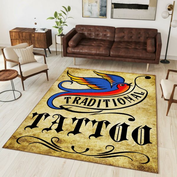 If you and a tattoo artist or a tattoo lover, then this Traditional Tattoos rug is for you. Classic design coupled with delicate patterns creates a charm that can entice anyone to look at the design. Tattoo rug designed by the talented artists of Rustypod, and made by skilled craftsmen. All make up this special carpet.
